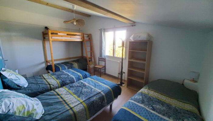 . 1 chambre avec 5 lits simples (90 cm) dont un en mezzanine